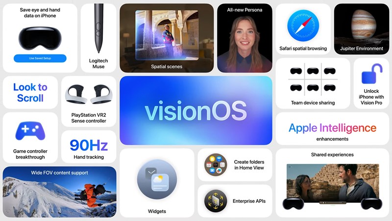 Vision Pro добива виџети што се поставуваат во физички простор, како календар или галерија на ѕид, со можност да „влезете“ во фотографиите. Видео повиците се со подобри 3D „персони“, можност за заедничко гледање филмови и поддршка за PlayStation VR2 контролери.