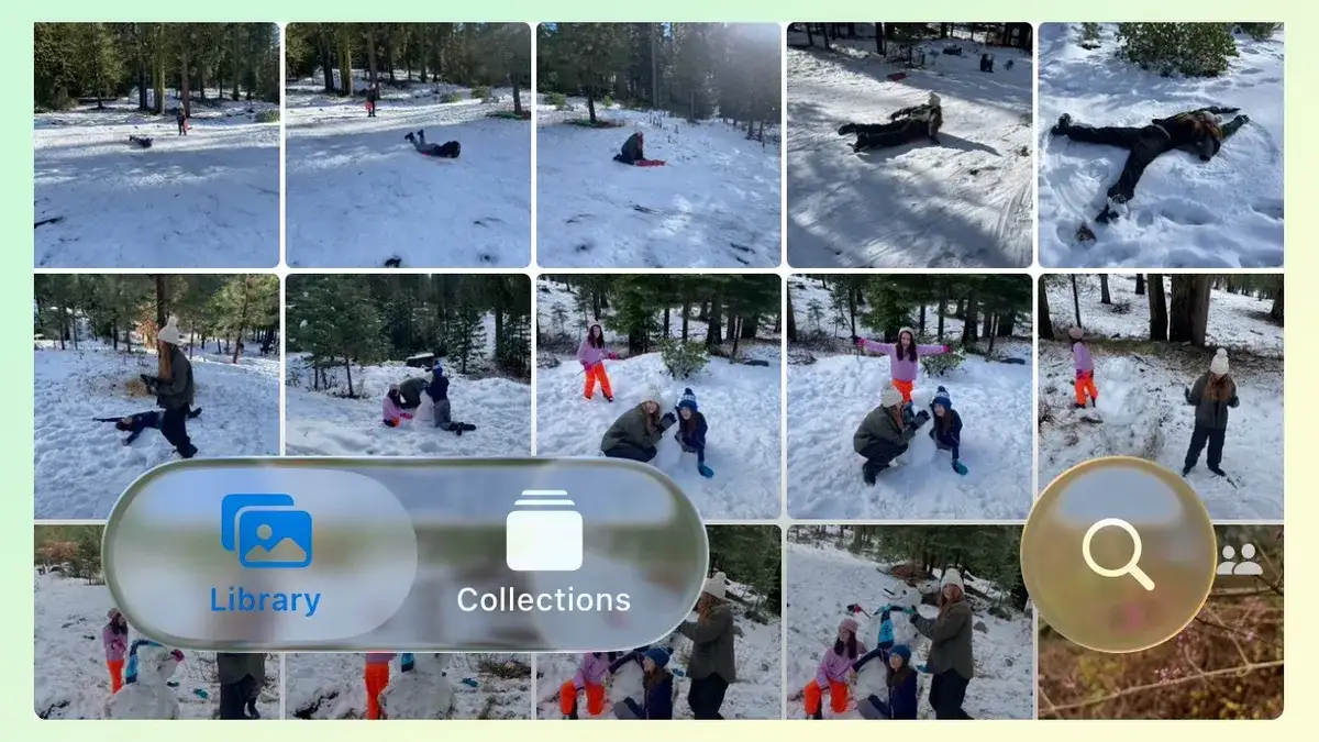 Камерата добива поедноставен интерфејс – основните режими (фото и видео) се истакнати, а останатите се достапни со повлекување. Дополнителните подесувања се отвораат со повлекување нагоре. Нова функција овозможува користење на AirPods како далечински прекинувач или за аудио снимање. Во апликацијата Photos се враќаат табовите за полесна навигација, а корисниците на iPhone 12 и понови можат да креираат просторни фотографии со длабински ефект.