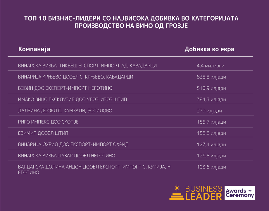 Home » Виното донесе добивка од 7,1 милион евра: Една винарница е на врвот, а другите се далеку зад неа