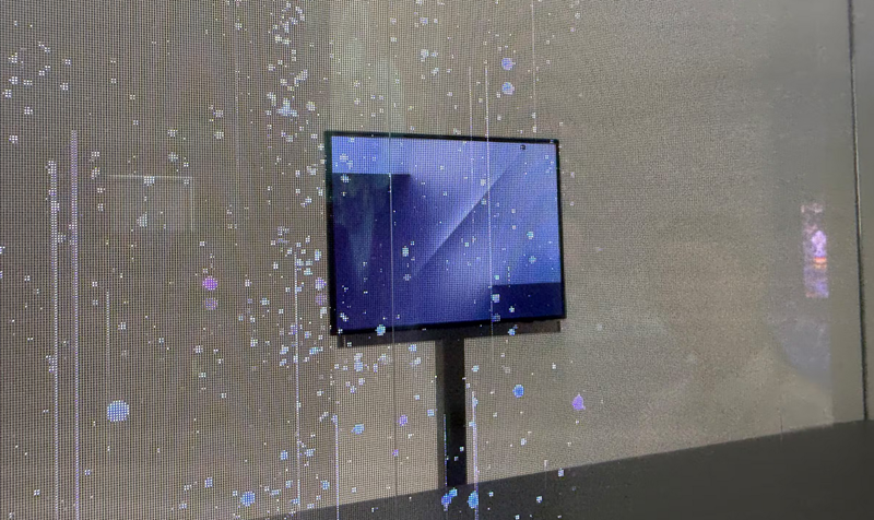 Трикратно преклопниот телефон на Samsung, кој сè уште нема официјално име, бил изложен на штандот на компанијата зад заштитно стакло, а посетителите не смееле да го допираат или држат во рака.